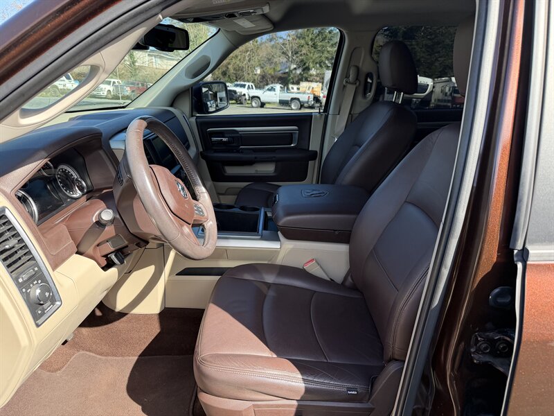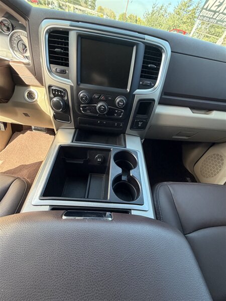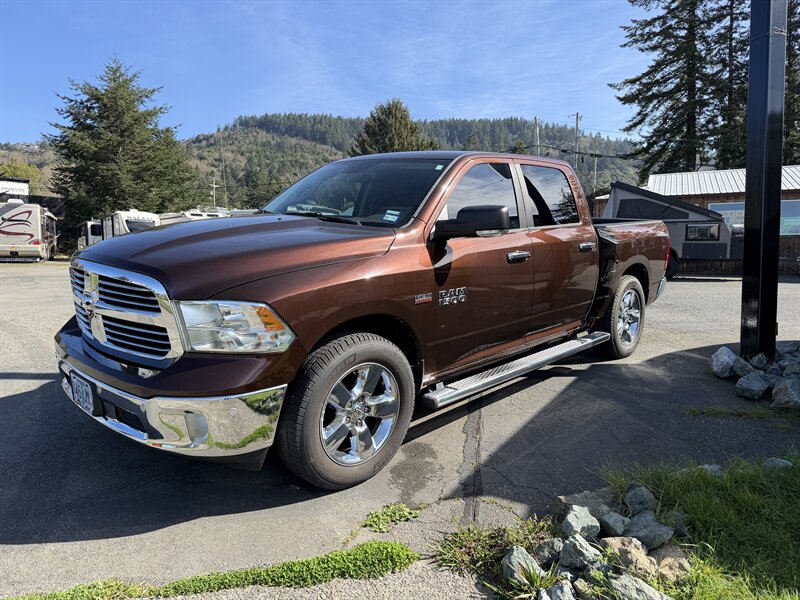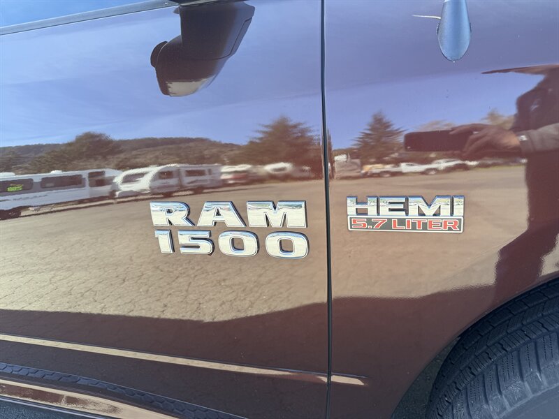 Included factory and factory-installed features (detailed) - Solid HEMI V8 drivetrain and full-size Crew Cab chassis designed for durability, towing and comfortable long-distance driving. - Power accessories: windows, door locks and mirrors for modern convenience. - Cruise control and tilt steering to make highway driving more relaxing. - Driver information center and clear, easy-to-read instrumentation give you vital vehicle info at a glance. - Air conditioning and a well-insulated cabin tuned to reduce wind and road noise. - Safety systems that come standard on 2014 Rams: anti-lock brakes (ABS), stability control, traction control and multiple airbags (front and side-curtain protection), designed to help keep you safe in everyday driving. - Daytime running lamps enhance visibility throughout the day.