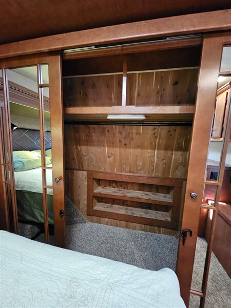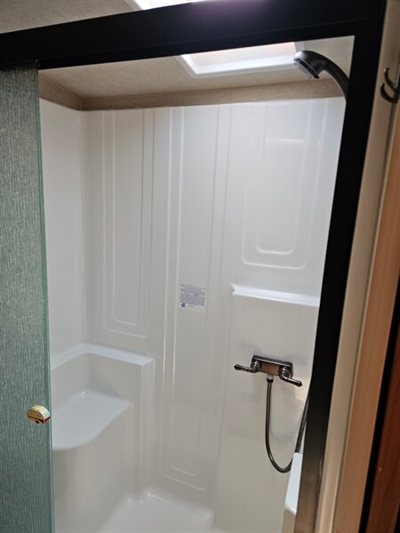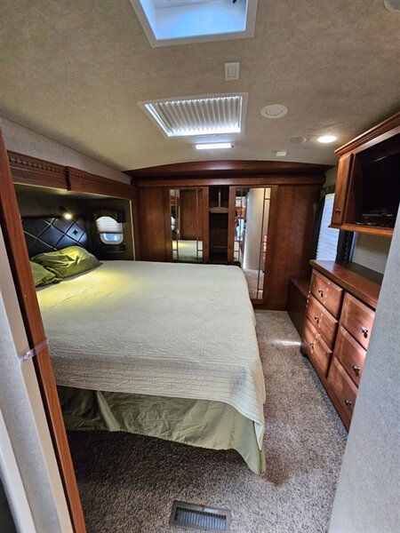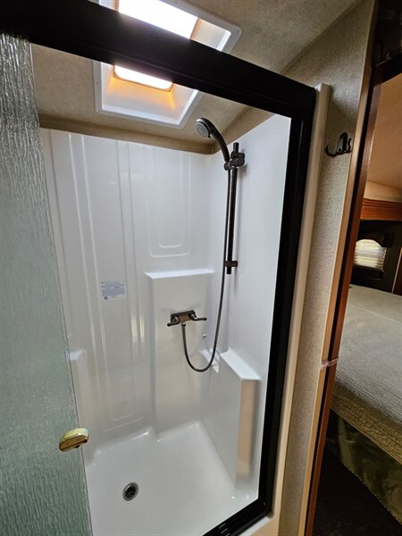 When it's time to unwind, retreat to the master bedroom with a plush queen-size bed and plenty of storage for all your essentials. The bathroom is like a spa on wheels, featuring a roomy shower and all the comforts of home.