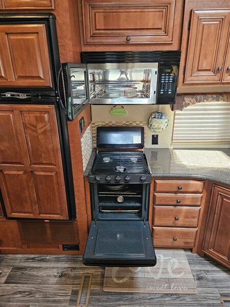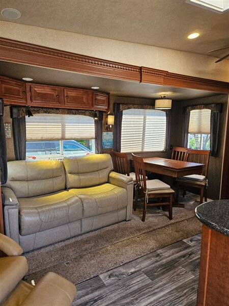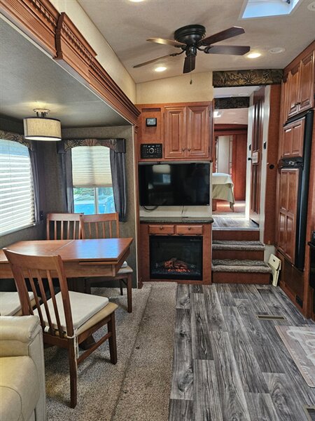 Let's talk factory default features - this gem is packed with all the bells and whistles you could ask for. Enjoy the spacious living area with comfortable seating and a cozy fireplace, perfect for those chilly nights. The kitchen is a chef's dream, equipped with modern appliances and ample storage space for all your culinary needs.