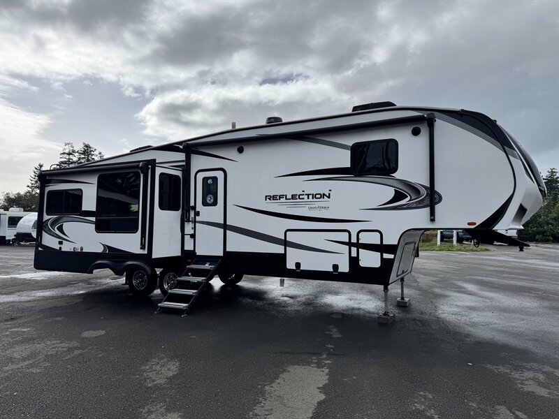 This Grand Design Reflection is loaded with factory-default features that enhance your camping experience. You’ll appreciate the easy-to-use power awning with LED lights, perfect for creating a cozy outdoor space. The heated and enclosed underbelly ensures that you can enjoy your travels in various weather conditions. Plus, the upgraded insulation helps maintain a comfortable temperature inside, no matter the season.