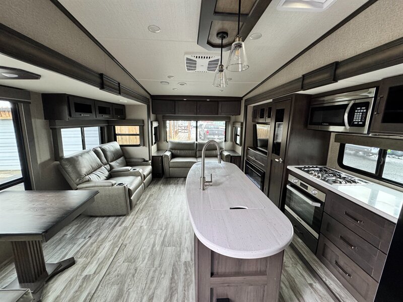 For those who love technology, this RV comes equipped with a Bluetooth sound system, allowing you to enjoy your favorite tunes while you unwind. The durable construction and attention to detail make this fifth wheel not just a vehicle, but a home away from home.