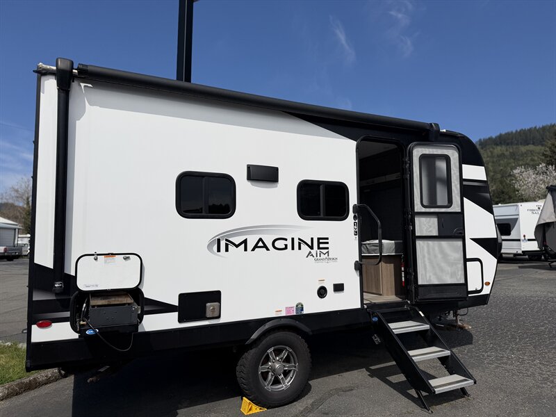 Overview This 2023 Grand Design Imagine 16ML AIM is a compact travel trailer built for lightweight towing and comfortable short- or extended-stay travel. The unit being offered includes a number of dealer-installed options to enhance off-grid capability, towing ease, and exterior convenience. Below is a neutral summary of the included options followed by a detailed description of the common factory-standard features you can expect from the Imagine line. Confirm exact factory build sheet and specifications with the seller prior to purchase.
