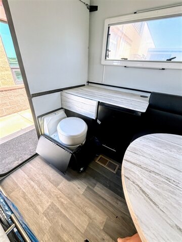 Includes Factory Standard Equipment ( Picture included) AGM 12 Volt Deep Cycle Battery 1.7 CU FT Refrigerator 1.0 CU FT Microwave Fold Up Glow Step Entry Stairs & Glo Guide Hand Rail 5 Gallon Propane Tank Black Upholstery ( Interior) Black Cabinets Symphony Alto ( white, light grey) Counter Tops 22"TV 500 Watt Military Grade Solar Panel with Solar Controller Toilet & Toilet Cabinet Plumb for BBQ Power Jacks with Remote & Removable Jack System