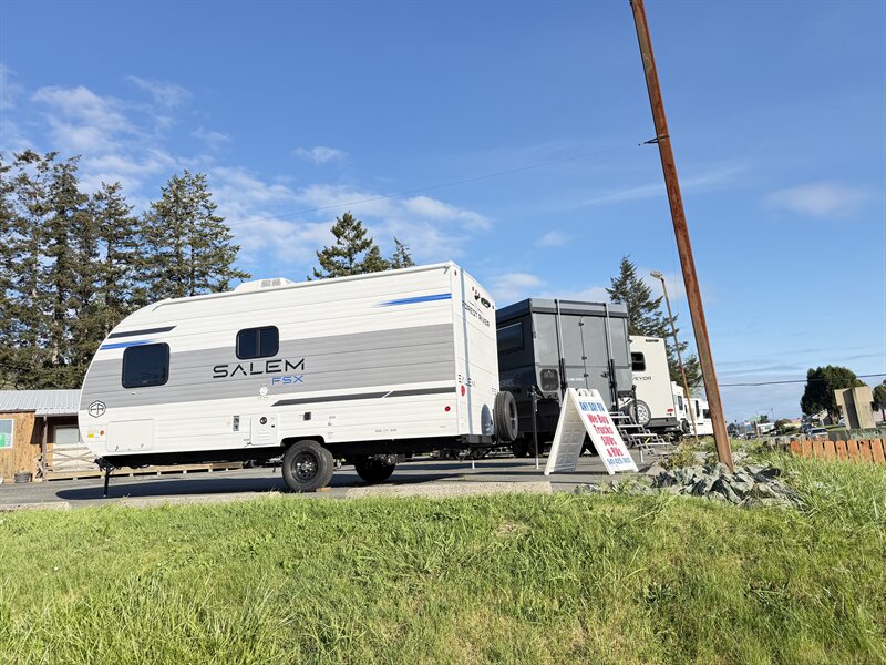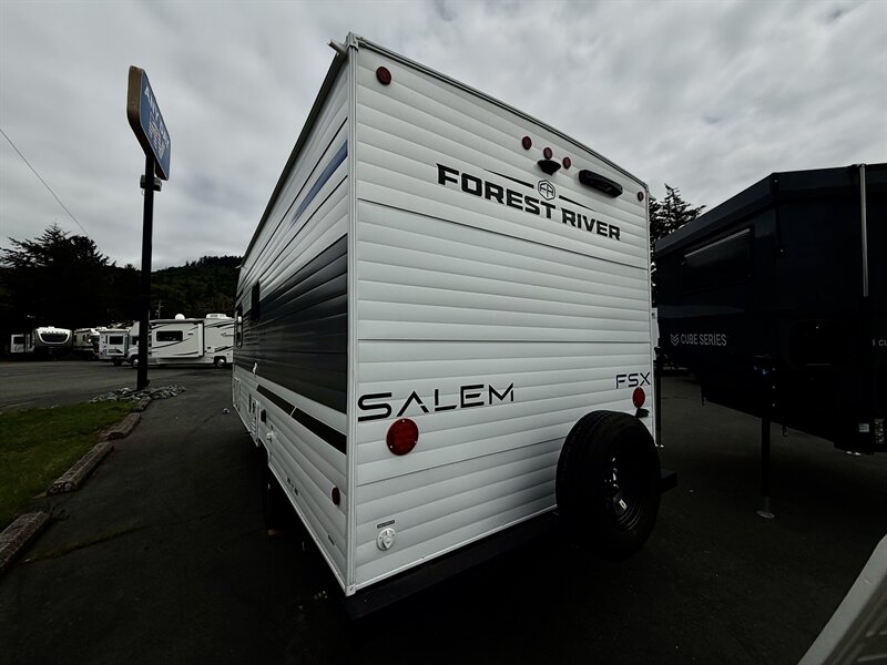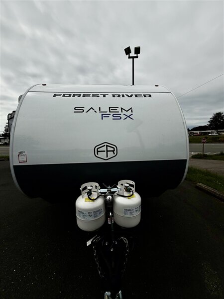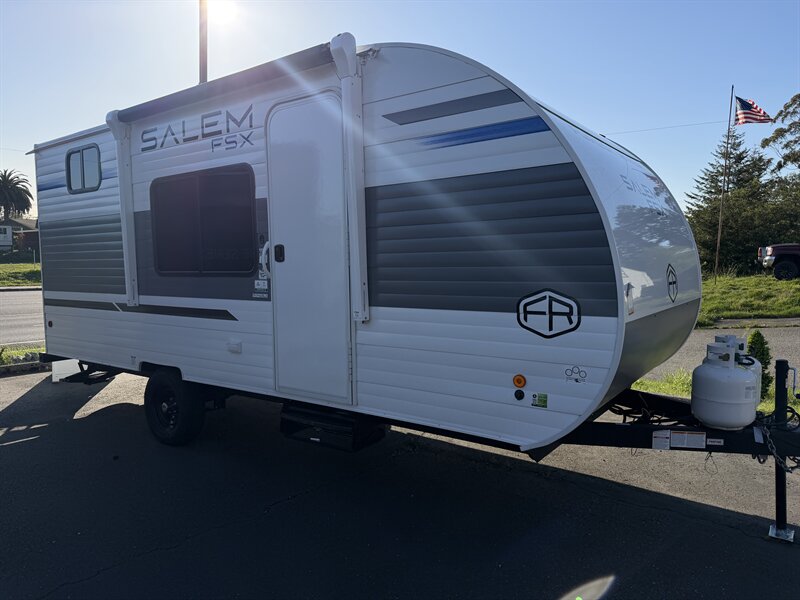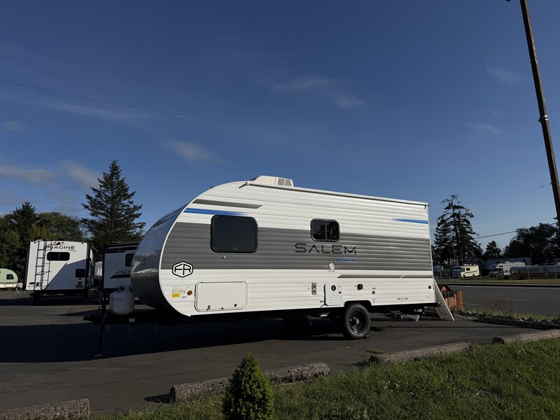 2026 Forest River Salem FSX 174DBLE — In excellent overall condition and ready for your next adventure! This compact, lightweight travel trailer packs a lot of thoughtful factory-built features into a very towable package, making it a great choice for couples, small families, or weekend explorers who want comfort without fuss. Factory-standard features you’ll appreciate: Exterior - Lightweight, road-friendly construction designed for easier towing and fuel efficiency. - Aerodynamic front profile and durable exterior skin with protective lower rock guard on the nose. - Power awning with integrated LED lighting for comfortable outdoor living after the sun goes down. - Exterior speakers and hookups for easy outdoor entertainment. - Manual tongue jack and stabilizer jacks for quick setup and a steady campsite. - Exterior service access panels and utility hook-ups located for convenience. Interior - Smart, space-efficient floorplan that makes the most of every inch while keeping the trailer feeling open and comfortable. - Bright LED interior lighting throughout for energy efficiency and a welcoming atmosphere. - Vinyl flooring that’s easy to clean and built to handle outdoor life. - Thoughtful storage solutions including overhead cabinets, wardrobes, and accessible cubbies to keep your gear organized. - Window coverings for privacy and light control. Kitchen - Functional galley with a durable countertop and integrated sink for easy meal prep and cleanup. - Two-burner cooktop designed for camping cuisine plus a microwave for quick reheats and convenience. - 12-volt refrigerator sized to match the trailer footprint — great for sandwiches, snacks and cold beverages. - Cabinetry and pantry space sized to store cookware, dishes and dry goods neatly. Sleeping & Bath - Double bunk configuration that provides comfortable sleeping for kids, guests or extra storage when needed — a standout feature of the 174DBLE layout. - Convertible seating/dinette sleeps additional guests and doubles as a dining area during the day. - Private wet bath with shower, toilet and vanity that makes overnighting comfortable without needing campground facilities. Systems & Convenience - Factory-installed heating and air conditioning designed to keep the interior comfortable across seasons. - AM/FM stereo with interior speakers and media hookups for listening to music or using mobile devices. - USB charging ports and 12V outlets positioned for modern convenience. - Freshwater, graywater and blackwater systems factory plumbed for reliable campsite operation. - Electrical system with shore power hookup and battery compartment; typically wired for 30-amp service (confirm exact hookups at time of purchase). - Basic safety features such as breakaway switch, smoke and CO detectors, and propane leak detection. Condition & Notes This particular 2026 Salem FSX 174DBLE is in excellent overall condition — maintained carefully, cleaned, and ready to hit the road. It offers the practical, factory-built features that make Salem FSX models popular: lightweight design, efficient use of space, and dependable systems for easy camping and travel. If you want a compact trailer with roomy functionality and bunk sleeping versatility, this one’s worth a look. Interested in learning more or scheduling a viewing? Reach out and we’ll get you details on current availability, floorplan walk-through, and any service history or warranty info you’d like to see. DANNY B Any Day Rv Your South Coast Salem Dealer! 541-425-7417