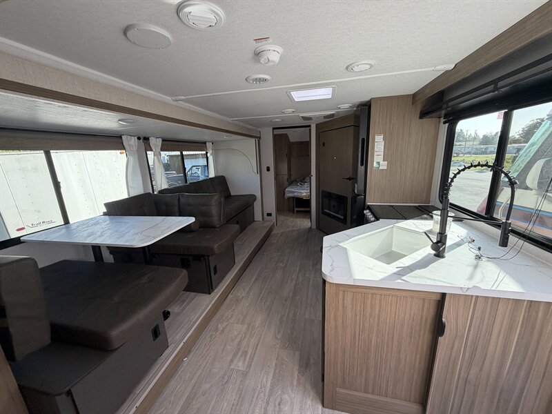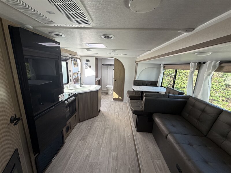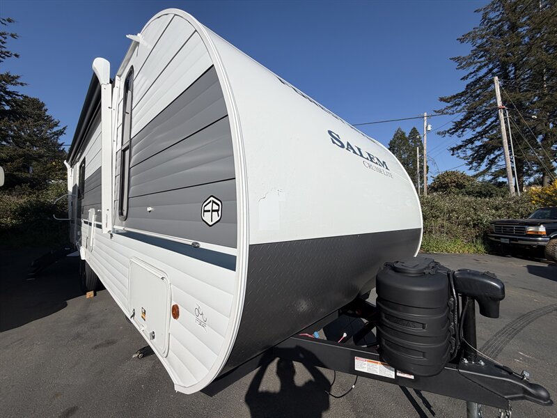 2026 Forest River Salem 25ICE — Excellent overall condition. Finished in ICE exterior with ECLIPSE interior, this travel trailer comes equipped with factory options including self-adjusting brakes, two outside speakers, Best-in-Class Value Package, central switch command center, E-Z Lube axles, full-extension ball-bearing drawer guides, instant/continuous hot water heater, and a radius entry door. Factory standard features deliver practical, durable construction and comfortable living: laminated exterior sidewalls with a protective finish, a robust framed chassis and stabilized undercarriage, insulated roof and underbelly, and tinted safety-glass windows. The interior includes a fully appointed galley with microwave and range, residential-style cabinetry with secure storage, solid-surface countertops, LED interior lighting, convertible seating/dining area, a private bath with molded shower, and a dedicated sleeping area with generous wardrobe storage. Systems-wise the coach is wired for 12V/120V power, has efficient furnace and roof A/C provisions, exterior storage compartments, exterior utility hookups, and prewired entertainment connections — all designed for reliable, comfortable travel. DANNY B Any Day Rv Your South Coast Salem Dealer! 541-425-7417