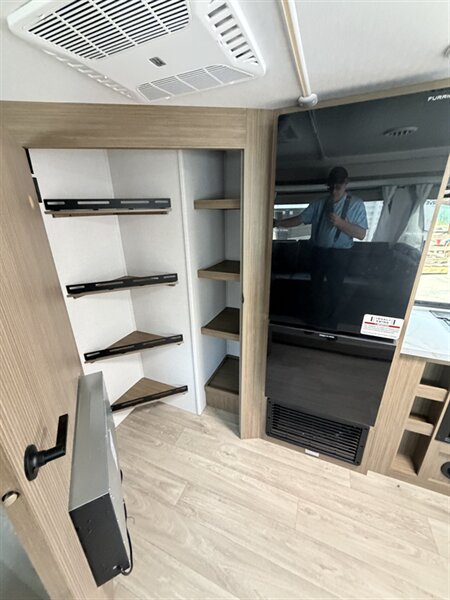 Kitchen and appliances - Well-equipped galley with a multi-burner range and oven or cooktop plus a microwave for easy meal prep. - NICE style refrigerator to keep food fresh while traveling. - Deep sink with high-rise faucet and practical countertop space for prepping meals. - Plenty of cabinets and pantry space to stow cookware, utensils, and dry goods.