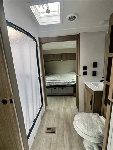 Optional Equipment Installed By Manufacturer ECLIPSE INTERIOR DECOR E-Z LUBE AXLES SELF ADJUSTING BRAKES FULL EXTENSION BALL BEARING DRAWER GUIDES CENTRAL SWITCH COMMAND CENTER (2) OUTSIDE SPEAKERS RADIUS ENTRY DOOR 13.5 DUCTED AC W/QUICK COOL XL GRAB HANDLE FIBERGLASS EXTERIOR WALLS 30# LP BOTTLES W/COVER FAMILY CAMPING PACKAGE FLIP-UP COUNTERTOP EXTENSION (N/A ON SOME MODELS); FOOT FLUSH TOILET; SKYLIGHT OVER TUB/SHOWER; COAT RACK; CABLE TV HOOKUP; LP QUICK DISCONNECT: BLACK TANK FLUSH: RADIAL TIRES; SPARE TIRE & CARRIER; DETACHABLE POWER CORD; OUTSIDE SHOWER; 2ND BUNK WINDOW; TUB/SHOWER SURROUND DUCTED A/C; BATTERY DISCONNECT, ENCLOSED HOLDING TANKS W/12V HEAT STRIPS