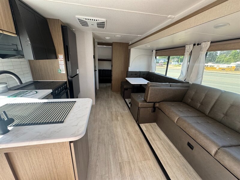 2. **Modern Kitchen**: Whip up delicious meals on the go in the well-equipped kitchen, complete with a stove, microwave, refrigerator, and ample storage space for all your culinary essentials.